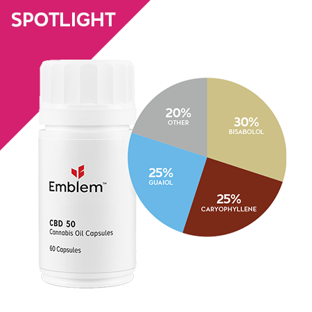 A precise and convenient way to take your medical cannabis, our full spectrum Emblem Oil Capsules offer simple, consistent and accurate dosing, providing the ability to easily track and adjust as needed. The high-quality capsules are taste-free, odourless, vegan and strain-specific, which helps deliver consistent results every time. The easily portable oil capsules provide a discreet medical cannabis format that more closely resembles a traditional medication. CBD 50 Capsules contain 50mg of CBD and <2.5mg THC in each capsule, and come in bottles of 60.